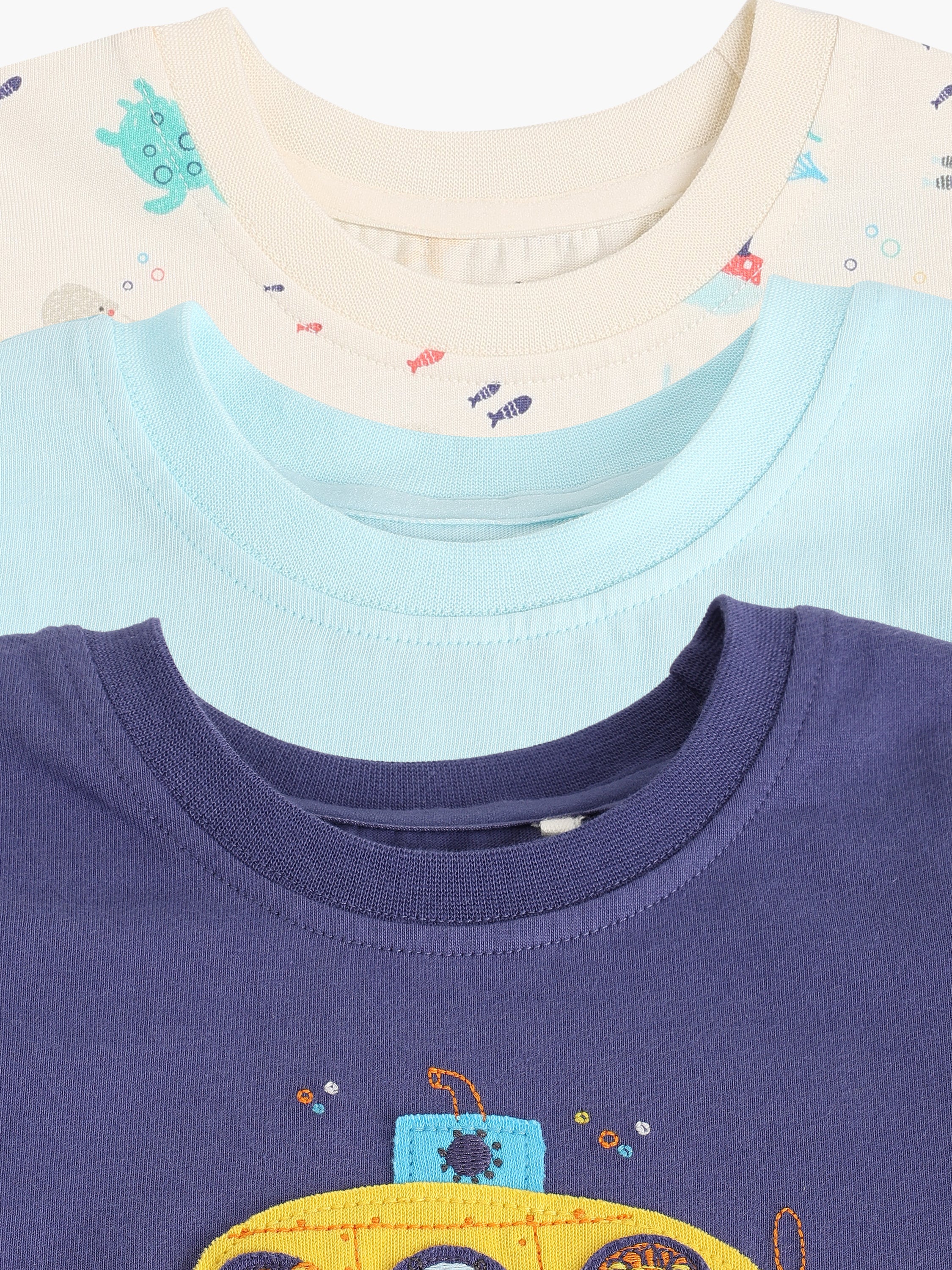 Baby Boys Pack of 3 Printed & Solid T-Shirts – Multicolour