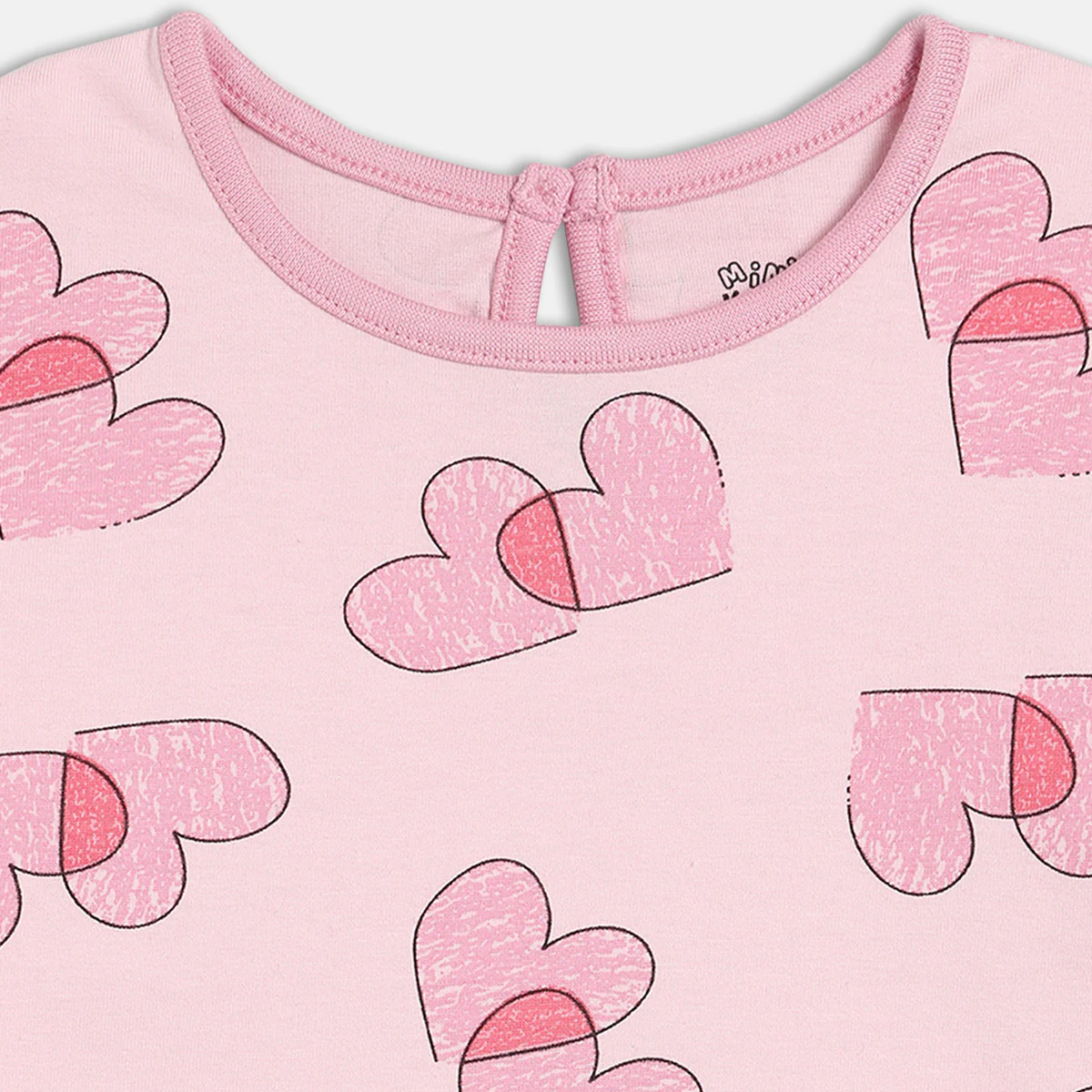 Girls Cotton Full Sleeves Hearts Printed Top - Pink