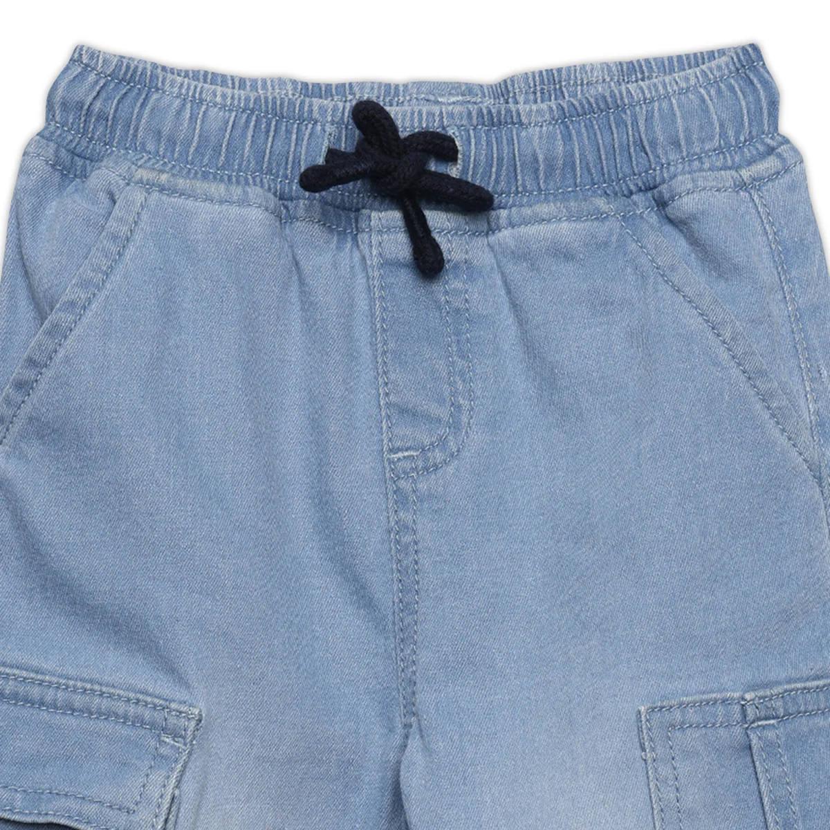 These light blue cargo jogger pants are designed for everyday comfort and practicality. Made from soft, breathable fabric with a denim like look, they feature an elasticated waistband with a drawstring, spacious cargo pockets, and ribbed hems for a snug fit. Perfect for active days, outings, or relaxed playtime.