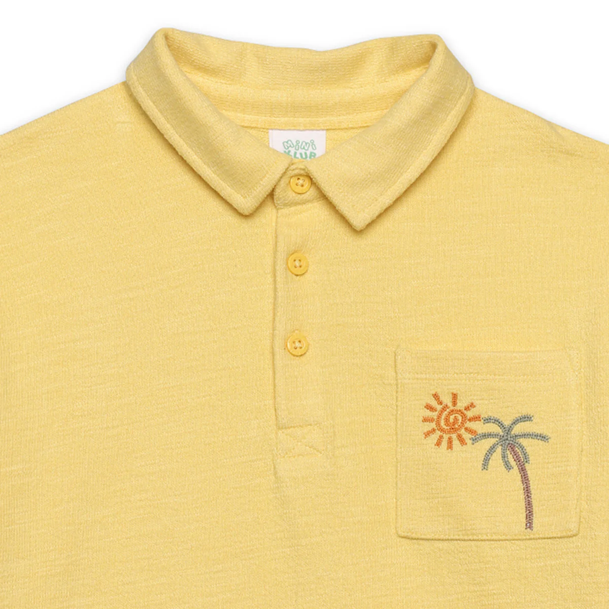 Brighten up your little one’s summer wardrobe with this adorable yellow polo T-Shirt. Crafted from soft, breathable fabric, it features a classic collar, short sleeves, and a cute embroidered palm tree and sun on the chest pocket perfect for sunny day adventures.